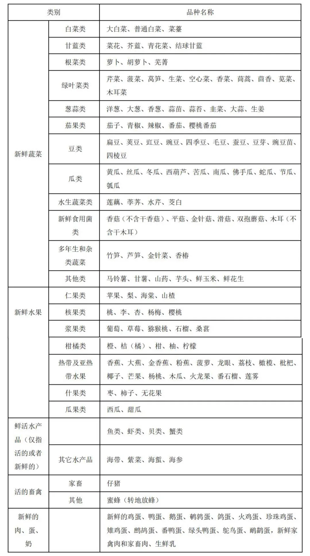 鲜活农产品品种目录